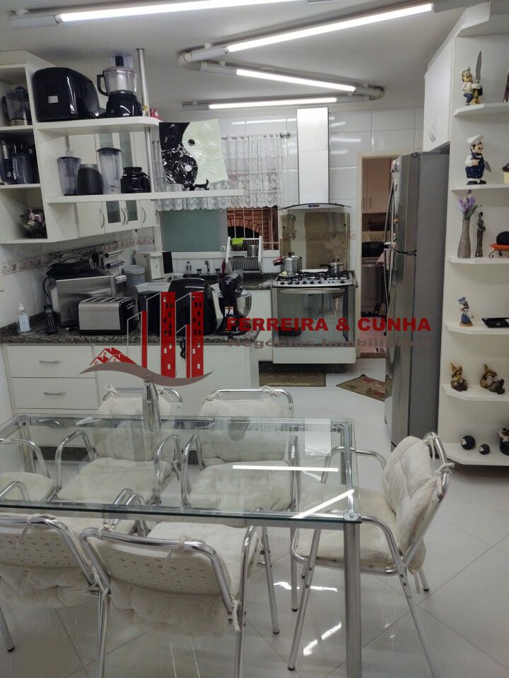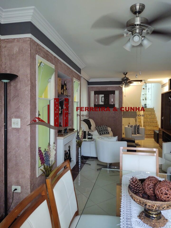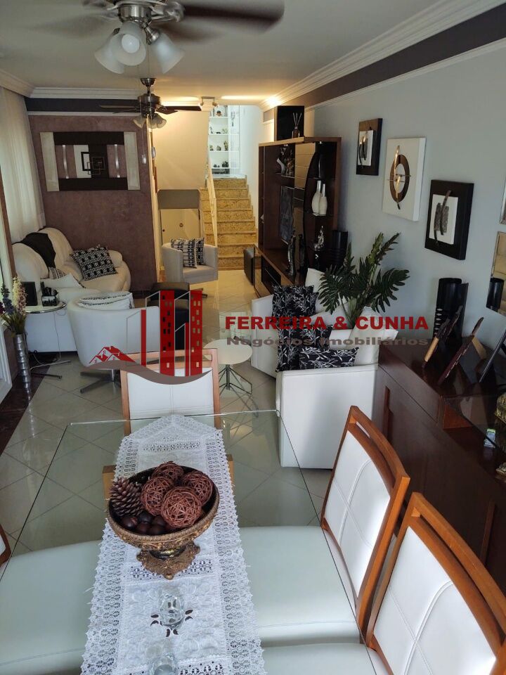 Sobrado com 3 suítes, sendo 01 com closet, armários embutidos, assoalho vinilico, sala 3 ambientes com lareira em ardósia, entrada lateral, cozinha planejada, área gourmet com churrasqueira, armários, porta de vidro e zetaflex, garagem coberta para 4 carros e uma descoberta, portões automáticos, porteiro eletrônico.